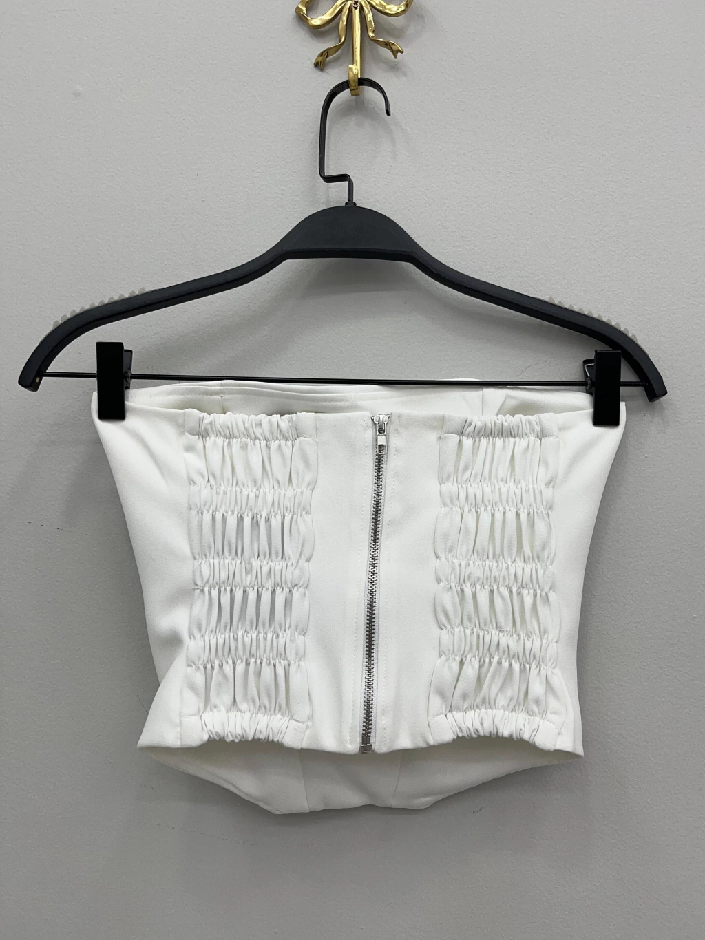 O Corset Lunara traz elegância minimalista com modelagem estruturada que valoriza a silhueta com suavidade. Com acabamento impecável, o busto apresenta recorte limpo e moderno, enquanto as costas ganham destaque com o lastex estruturado que garante conforto e ajuste perfeito ao corpo. O fechamento por zíper deixa o visual mais prático sem comprometer a sofisticação. Uma peça versátil e atual.