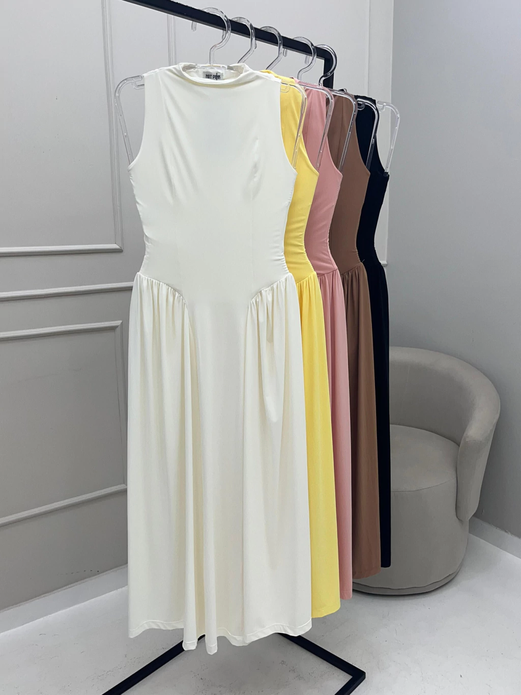 O Vestido Mariah é uma peça leve, feminina e versátil, criada para valorizar o corpo com elegância natural. Feito em poliamida de toque macio, possui caimento fluido e confortável. Seu design minimalista traz gola redonda, modelagem mais ajustada na parte superior e saia midi levemente franzida, garantindo movimento e sofisticação na medida certa.